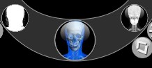 Moving to the left displays soft tissue, moving up sharpens the image contrast.